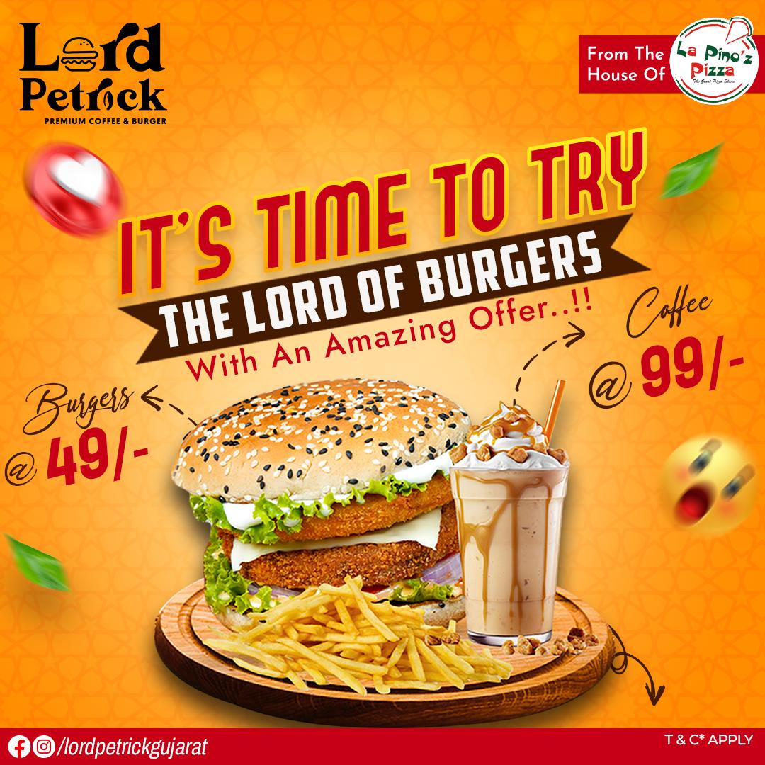 Lord Petrick has all the solutions for your cravings as we know for marketing your brand. We have provided awestruck designs to strike up your hunger and acknowledge you about what's best for you. Lord Petrick's social media handling has been an answer to all your food desires and queries. From organizing a 100-second burger challenge in the Lord Petrick to influencer marketing we have got it all. The team has personally indulged in making Lord Petrick Gujarat the face of social media.